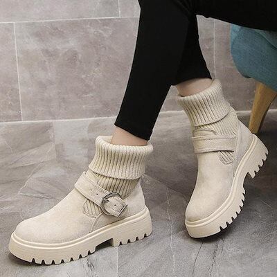 メガ割 厚底ブーツ 厚底ブーティー ソックス風 ショートブーツ レディース 2wayニットブーツ バックルベルト 厚底ブーツ 歩きやすい ハイカット ブーツ おしゃれ