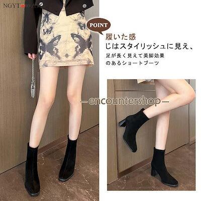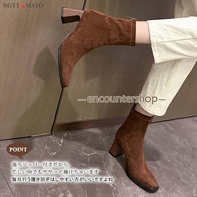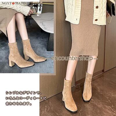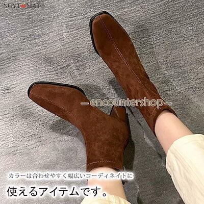 [PassionateRob0ts]ショートブーツ レディース 太めヒール ブーツ ショート丈 バックジッパー スクエアトゥ スエード調 黒 履きやすい 歩きやすい カジュアル おしゃれ