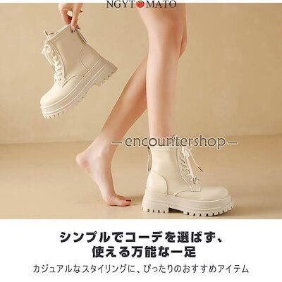 [PassionateRob0ts]ブーツ 裏ボア 暖かい レースアップブーツ レディース 厚底 ラウンドトゥ 太めヒール バックジッパー 編み上げブーツ ショート丈 履きやすい