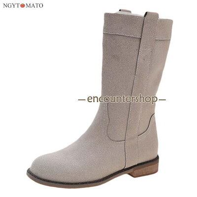 [PassionateRob0ts]ショートブーツ レディース スエード調 コーンヒール ブーツ ミドル丈 ミドルブーツ 筒太め 黒 履きやすい 歩きやすい カジュアル おしゃれ 美脚