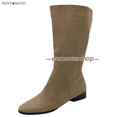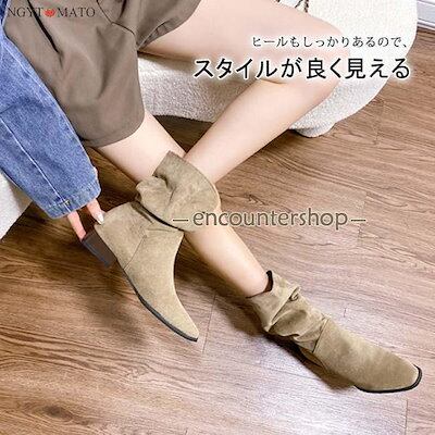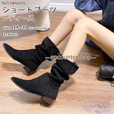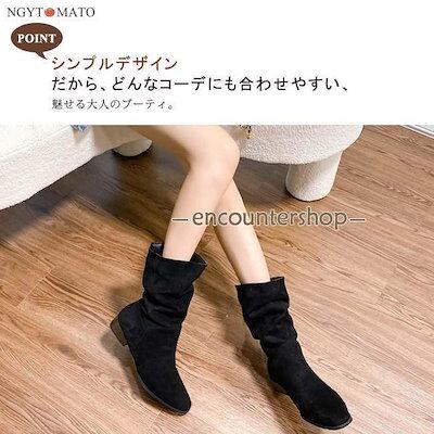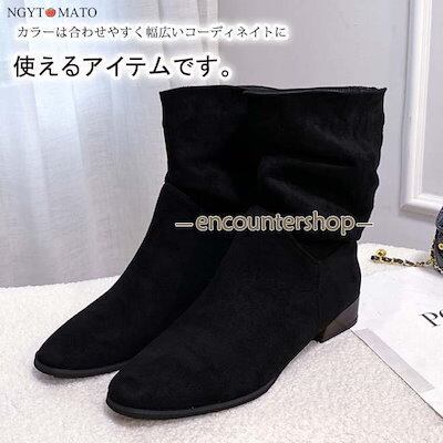 [PassionateRob0ts]ショートブーツ レディース 太めヒール ブーツ ミドル丈 くしゅくしゅ スエード調 スクエアトゥ 筒太め 黒 履きやすい 歩きやすい カジュアル
