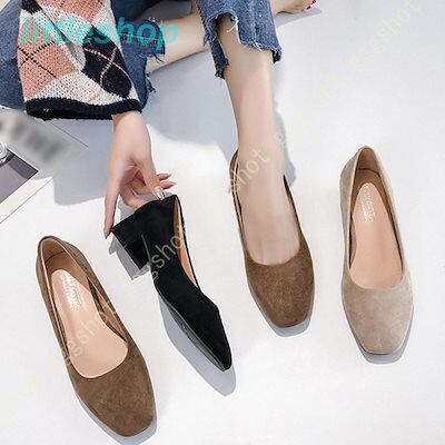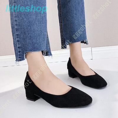 【3日以内出荷】パンプス レディース 黒靴 スクエアトゥ 痛くない 脱げない 柔らかい チャンキーヒール 3.5cmヒール スリッポン 歩きやすい オフィスシューズ 二次会 通勤