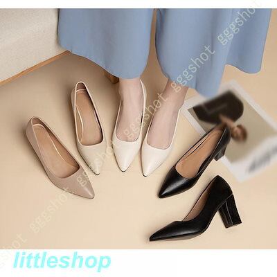 【3日以内出荷】パンプス 痛くない 歩きやすい 走れる 4E チャンキーヒール ポインテッドトゥ パンプス 7cmヒール レディース 幅広 太ヒール 大きいサイズ 小さいサイズ