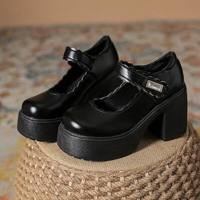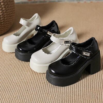 2024 ローファー 新作 フレンチ メリージェーンシューズ キャンパス風 ハイヒール 厚底 太ヒール 厚底シューズ フラットシューズ レディース PU材質 パンプス 百掛け パンプス ワンストラ