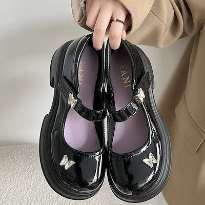 靴高級感のある黒のレトロな厚底メアリージェンの小さな革靴女2024新型パンプス レディース シューズ 美脚サンダル サンダル