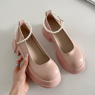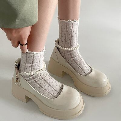 シューズ 美脚サンダル レディース 靴丸みを帯びたレトロで厚底になったメアリージェーンの小さな革靴女性2024新型春秋フランスにスカートを合わせたパンプス サンダル