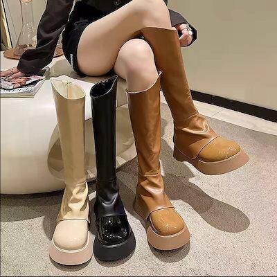 気質 ロングブーツ 韓国ファッション マルティンス靴 秋冬 新しい入荷 真皮 厚底 足が長いように見える ウォータードリルチェーン ショートブーツ