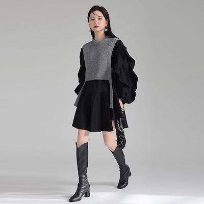 ットアップ レディース 秋冬 ニットベスト ブラウス 二点セット 百掛け セット