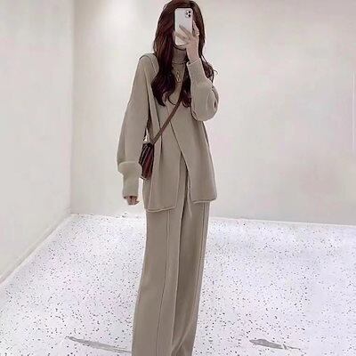 秋冬 新作 おしゃれ 気質 レディースセットアップ ニット アウター 二点セット 上下セット セーター ワイドパンツ セットアップ7