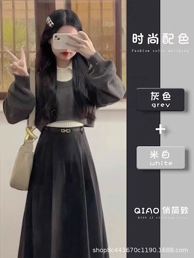 ハイエンドのカスタマイズ-秋冬レディースティースタイル衣装韓流ドラマカレッジスタイルのリッチお嬢様気質のツーピーススーツスカート一式