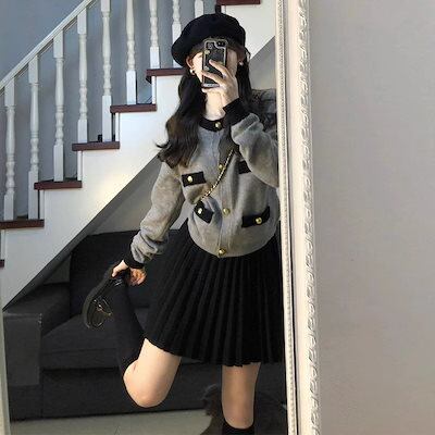 ハイエンドのカスタマイズ-秋冬新作レディーススーツ小香風セータージャケットショートスカートヘップバーン風高級小ドレス2点セット