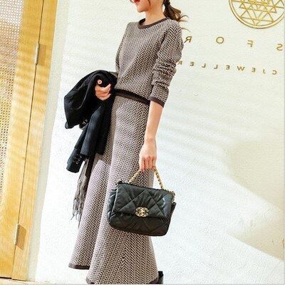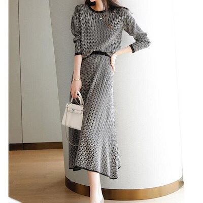 セットアップ レディース 秋と冬 きれい 長袖 ニットセット セーター スカート タイトスカート ミモレ丈 ニットソー 丸首 オシャレ オフィス 着痩せおすすめ商品