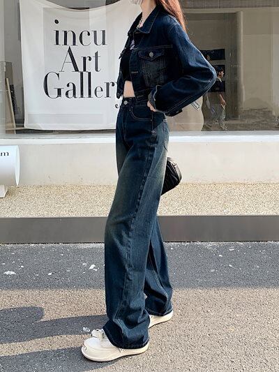 デニムジャケット セットアップ ジーンズ ジーパン ショート ワイド パンツ ストレート アウター 羽織り 学生 上下セット カジュアル ハイウエスト