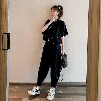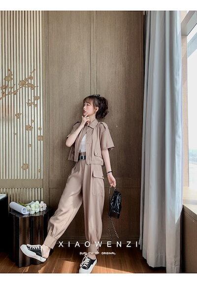 トレンドデザインレディースジャケット カーゴパンツ 2点セットchicレディーススーツ 人気韓国