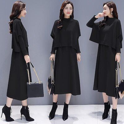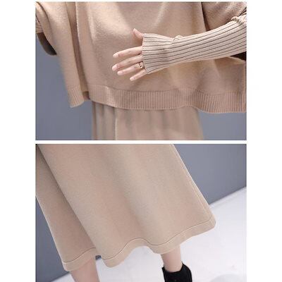 セットアップ ハイネック ニットベストレディース ニットワンピース 韓国 秋 冬 体型カバー 上品 通勤 OL