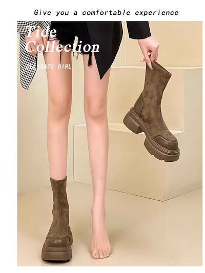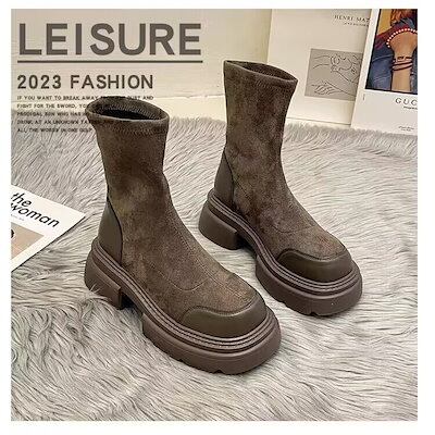 【3日以内出荷】【3日以内出荷】厚底シューズ ブーツ レディースマーティンブーツ 2023新作 英国風厚底高めソックスブーツ韓国ファッション