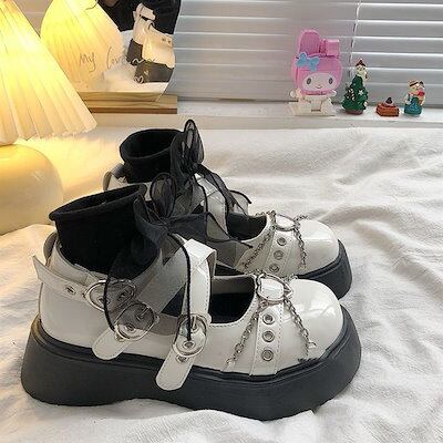 ロリータ 靴 レディース チャンキーシューズ パンクスタイル ラウンドヘッド マフィン ボトム JK レザーシューズ