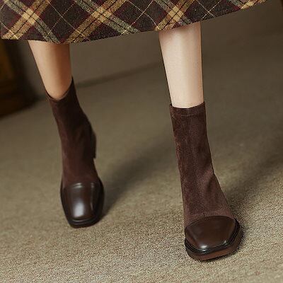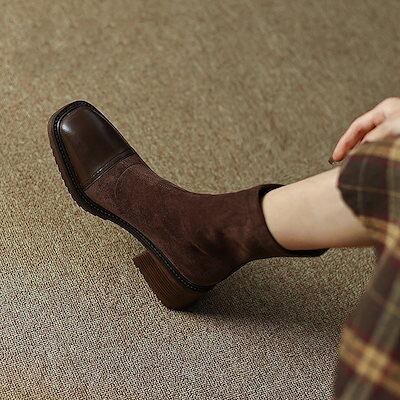 【2枚購入で 2oo円OFF! 】新作 冬 裏ボアタイプ ウエスタンブーツ シューズ レディース 太ヒール ショット丈ブーツ ーシューズ スエード 黒 スエード調靴 ショートブーツ 福袋