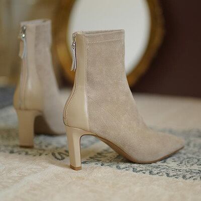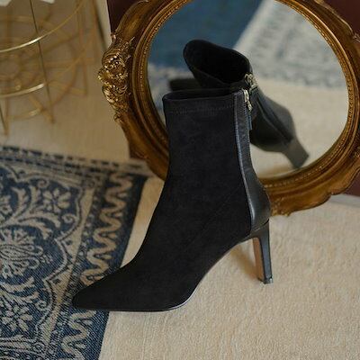 【2枚購入で 2oo円OFF! 】新作 レディース ハイヒール 防寒 おしゃれ スエード調靴 美脚 加絨保暖靴 ピンヒール ポインテッドトゥ ショットブーツ ミドルカット ショートブーツ 福袋