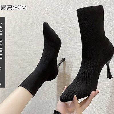 ブーツ スキニーブーツ レディース ニット ストレッチブーツ ソックスブーツ ミッドカーフ ハイヒール チャンキーヒール ショートブーツ 韓国ファッション