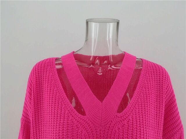 無地Vネックニットセーター