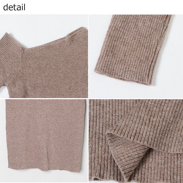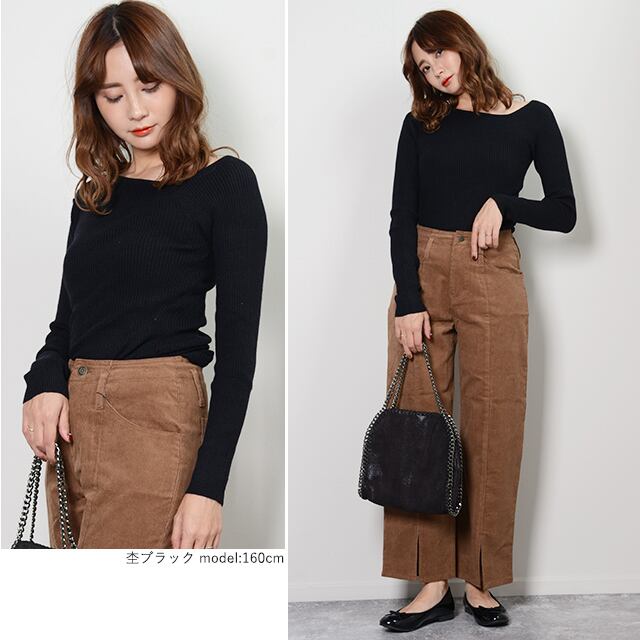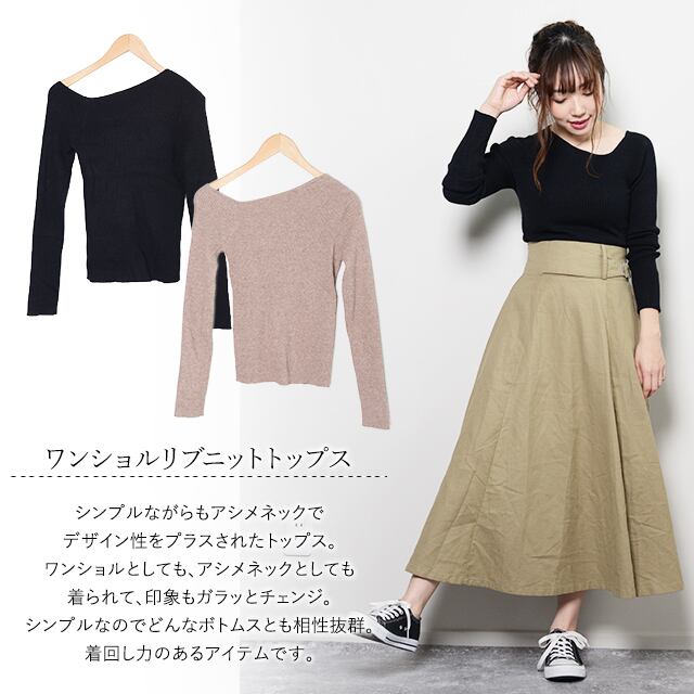 ワンショルリブニットトップス 【即納】 トップス ニット ワンショル リブ 伸縮性 シンプル