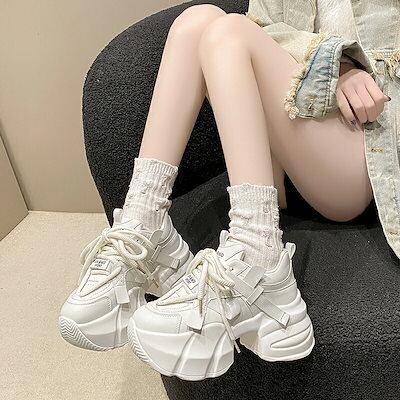 厚底スニーカー レディース 厚底 スニーカード 8cm ローカット ローカットスニーカー 紐 ボリューム ソール 紐あり ヒールスニーカー ダッドシューズ レースアップシューズ 脚長 滑り止め