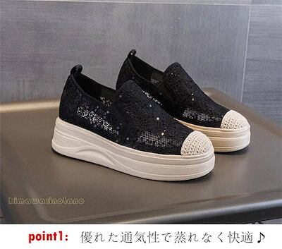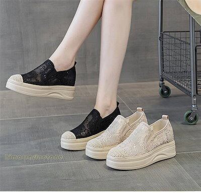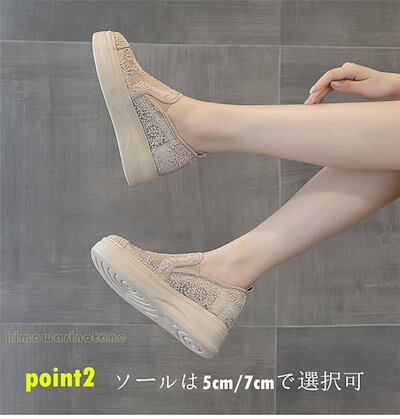 3タイプ5cm 7cm 歩きやすい スリッポン レディース 厚底スリッポン スニーカー レース柄