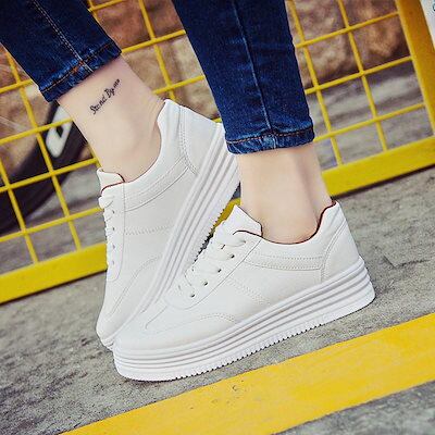 ハイソールスニーカーレディースシューズスニーカーローカット厚底無地シンプル白黒ピンクお出かけかわいいおしゃれ