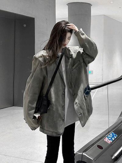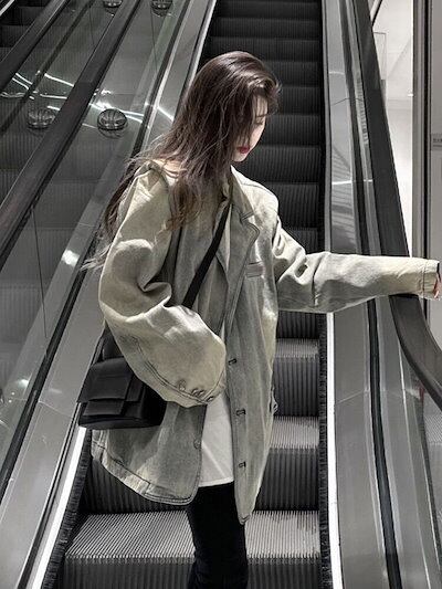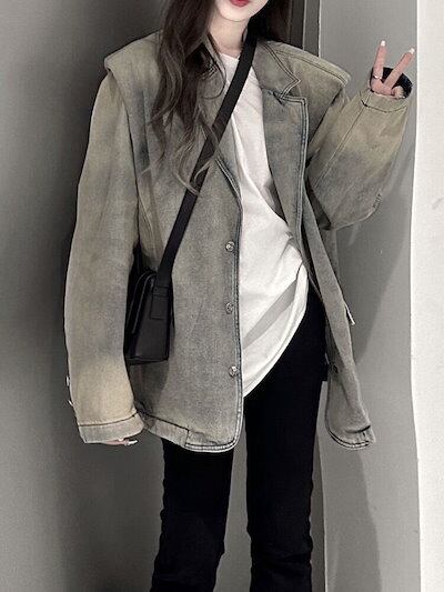 コーデに役立つ!デニムジャケット2024春レディース新作アメリカンレトロ長袖ジャケットゆったり万能ウォッシュドスーツ襟デニムジャケットトップス