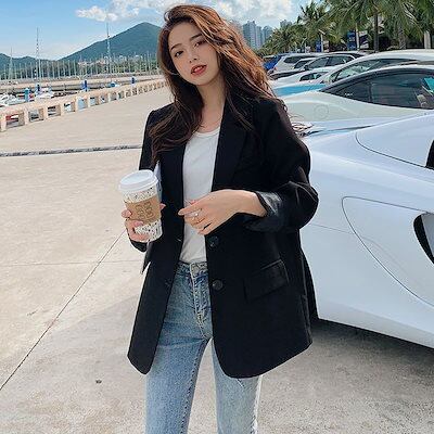 2024 春 スーツアウター おしゃれ感 スーツ 通勤百掛けスーツゆったりスーツ レディース フリースジャケット スーツアウター 韓国ファッション
