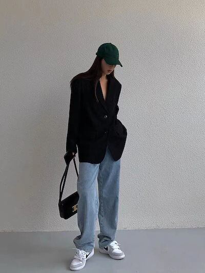2024 春 スーツアウター 黒いスーツコートゆるいレトロなカジュアル レディース フリースジャケット スーツアウター 韓国ファッション
