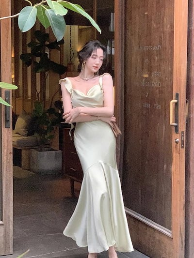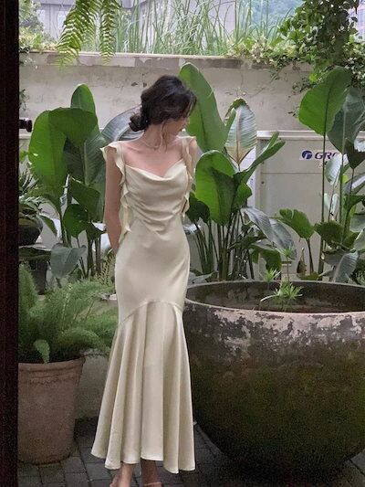 2024 春 ワンピース フランス サテン コード ロングスカート スーツ 結婚式 ドレス パーティードレス お呼ばれ 披露宴