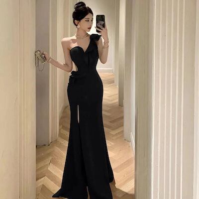 2024 春 ワンピース ななめ肩 フォークスカート やせて見える スーツ 結婚式 ドレス パーティードレス お呼ばれ 披露宴