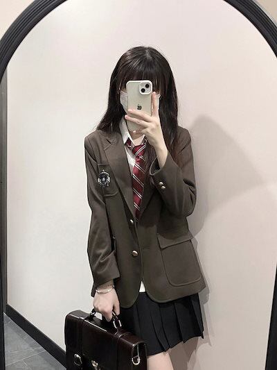 アカデミア風 jk 制服スカート 3枚セット 茶色ブレザーブラウス 春秋 タイププリーツスカート白シャツ