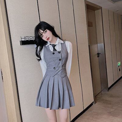JK 制服 ベスト プリーツ レディース 4点セット 学院風 若く ファッション スーツ ワンピース