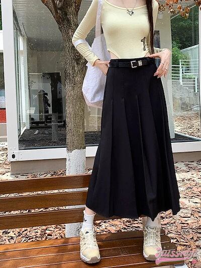 プリーツスカート ドレーピースーツスカート ロング ミドル丈プリーツAラインスカート 韓国ファッション レディース カジュアル 可愛い 大人 シンプル
