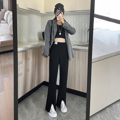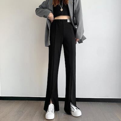 コーデュロイ スーツパンツ 通勤 裾スリット フレア 春/秋 2タイプ ブーツカット フレア スウェット ゴムウエスト レディース ロングパンツ 裏起毛
