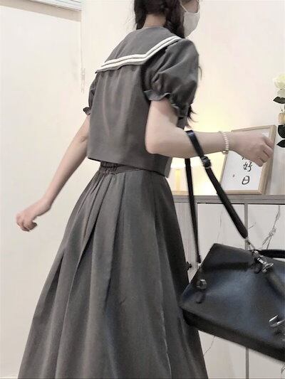 ドレス レディース[ツーピーススーツ]送信弓気質ファッション半身スカート女子学生+グレーのシャツ韓国ファッション マキシスカート