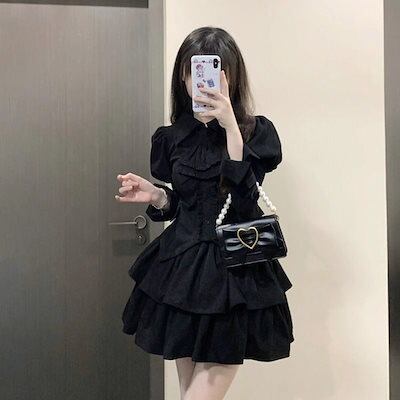 ワンピース2024 2点セット 新作 フレンチレトロ 小さめ ヘップバーン風 スパイシーガール 黒 ビスチェ ツーピーススーツ