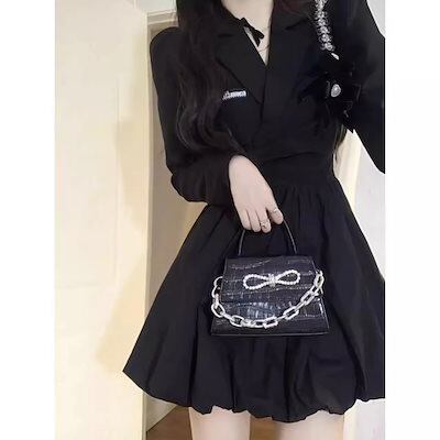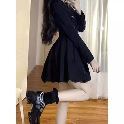 ワンピースブラックスーツドレス女性秋と冬の小さな大学スタイル韓国ニッチウエスト細い小さな黒いスカート