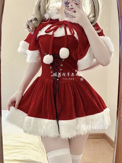 【二枚目は300引きです】クリスマスコフレ クリスマス雰囲気レッドドレススーツ冬の新スタイルウエストセクシーシックホットガールショートスカートレディース2点セットサンタコスプレ