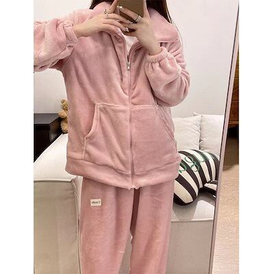 【3日以内出荷】ふわふわパンダのぬいぐるみスポーツファスナーパジャマレディース秋冬2023フランネル純色ラージサイズホームスーツ