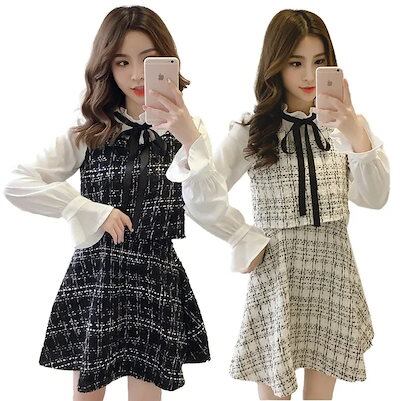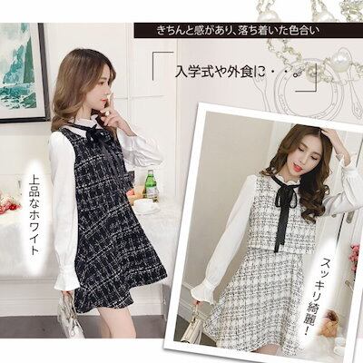 2024秋夏トレンド 国内発送ブラウスコンビツイード ワンピース 量産型 ブラック ホワイト 量産女子 レディース 可愛いスーツ-卒業式 入園式 入学式 卒園式スーツ 新生活応援ビジネス特集 水着 ビ