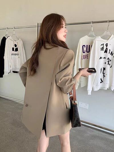 ジャケット2023春と秋の新作スーツジャケット後に開叉したカジュアルでゆったりしたスーツが爆売れレディース 冬アウター 韓国ファッション