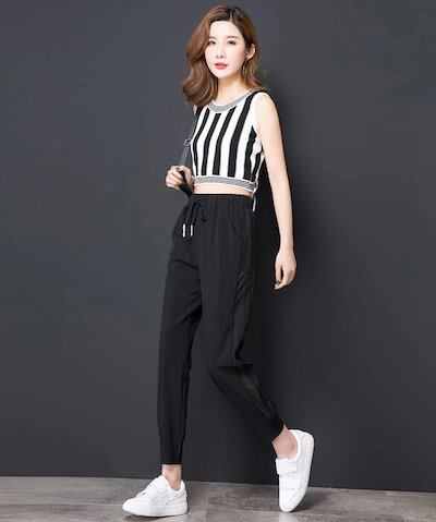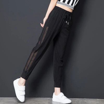 韓国ファッション レディース 大きいサイズ 接触冷感ひんやり美脚サルエルパンツ 9分丈 カジュアルズボン 夏 ストレッチ 涼しい