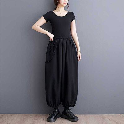 「ファットガール」 2024春夏 ロングパンツ 九分丈 テーパードパンツ ゴム ワイドパンツ 体型カバー 大きいサイズ ゆったり レディース