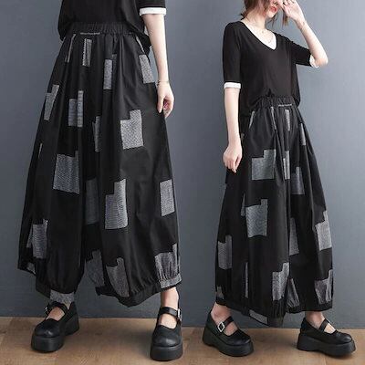 「ファットガール」 夏 九分丈 ワイドパンツ ゴム 体型カバー 大きいサイズ ゆったり レディース