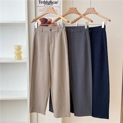 2024 秋 カーキ スーツ パンツ レディース ゆったり ワイド ストレート ナインパンツ ネイビー 秋 スーツ パンツ テーパードパンツ