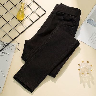 【3日以内出荷】脚長効果!スキニーデニムパンツ 大きいサイズ ルーズウエストジーンズハイウエストストレッチスリムパンツペンシルパンツ レディース 韓国ファッション